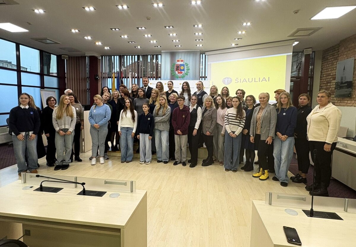 Spalio 24 dieną Šiaulių miesto savivaldybėje vyko savivaldos mėnesiui paminėti skirtas susitikimas su miesto meru Artūru Visocku. Renginyje dalyvavo ir mūsų gimnazijos mokinių savivaldos atstovė – antros klasės mokinė Žemyna. Pasak Žemynos, meras ne tik įdomiai pristatė savivaldybės veiklą, bet ir atskleidė, kiek daug tvirtybės, profesionalumo ir atsakomybės reikia, kad miestas augtų, taptų patrauklus gyventi ir kurti.