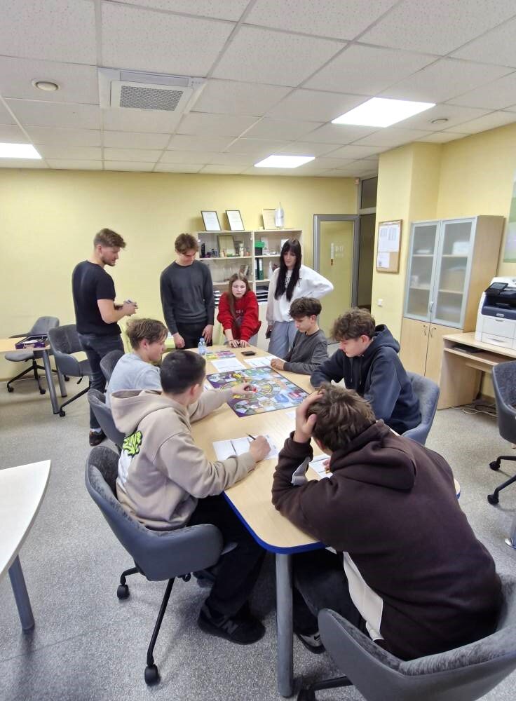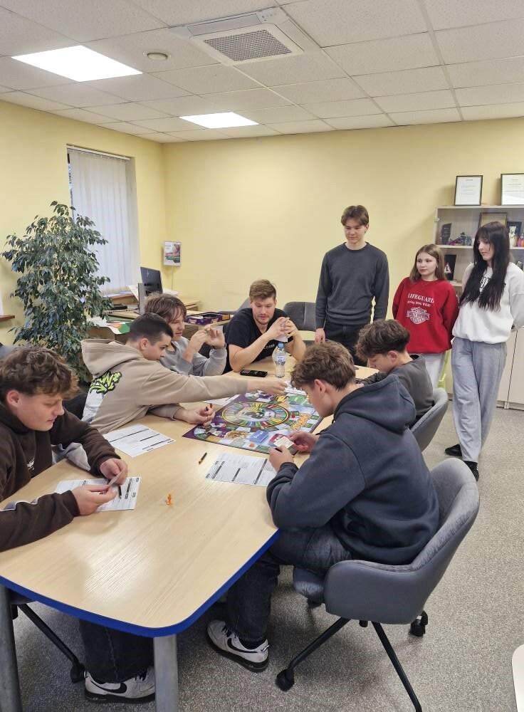 Lapkričio 14 d. gimnazijos pirmokams buvo surengtas finansinio raštingumo žaidimas „Pinigų srautas“. Šį užsiėmimą, kaip tarnystės projekto veiklą, vedė trečiokai savanoriai Rugilė, Gustė, Dominykas, Ugnė ir Mija drauge su asociacijos „Finansiniai akcentai“ nariais Modestu Mondrovicku ir Ieva Mondrovicke.