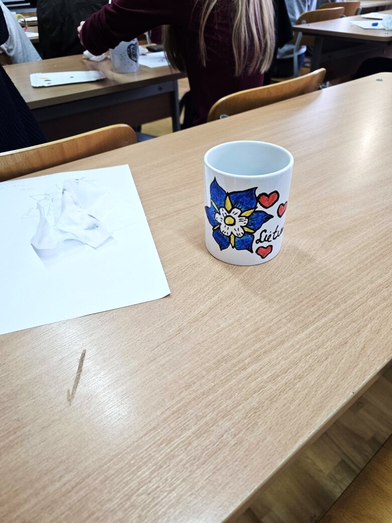 Pasitinkant Lietuvos valstybės atkūrimo dieną – Vasario 16-ąją, 1m ir 2m klasių mokiniai šiandien dalyvavo kūrybinėje-edukacinėje veikloje „Puodelių dekoravimas“. Edukaciją vedė menininkė Kristina Taurosevičiūtė, kurios dėka pamoka virto jaukia ir įkvepiančia kūrybos erdve.