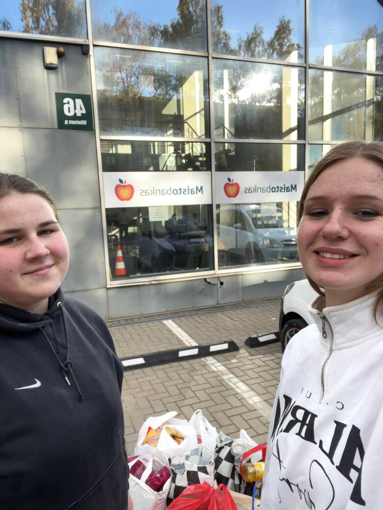 Spalio 13–17 d. mūsų gimnazijoje vyko prasminga socialinė akcija, kviečianti bendruomenės narius prisidėti prie pagalbos sunkiau gyvenančioms šeimoms, vienišiems senjorams ir kitiems socialiai pažeidžiamiems žmonėms. Mokiniai, mokytojai ir kiti gimnazijos darbuotojai aktyviai dalyvavo aukojant ilgai negendančių maisto produktų – nuo kruopų ir makaronų iki konservų bei aliejaus.