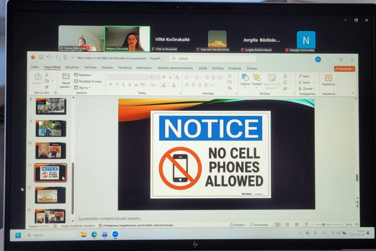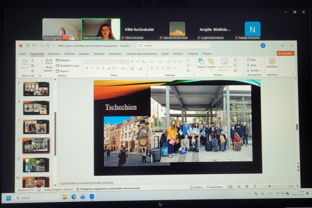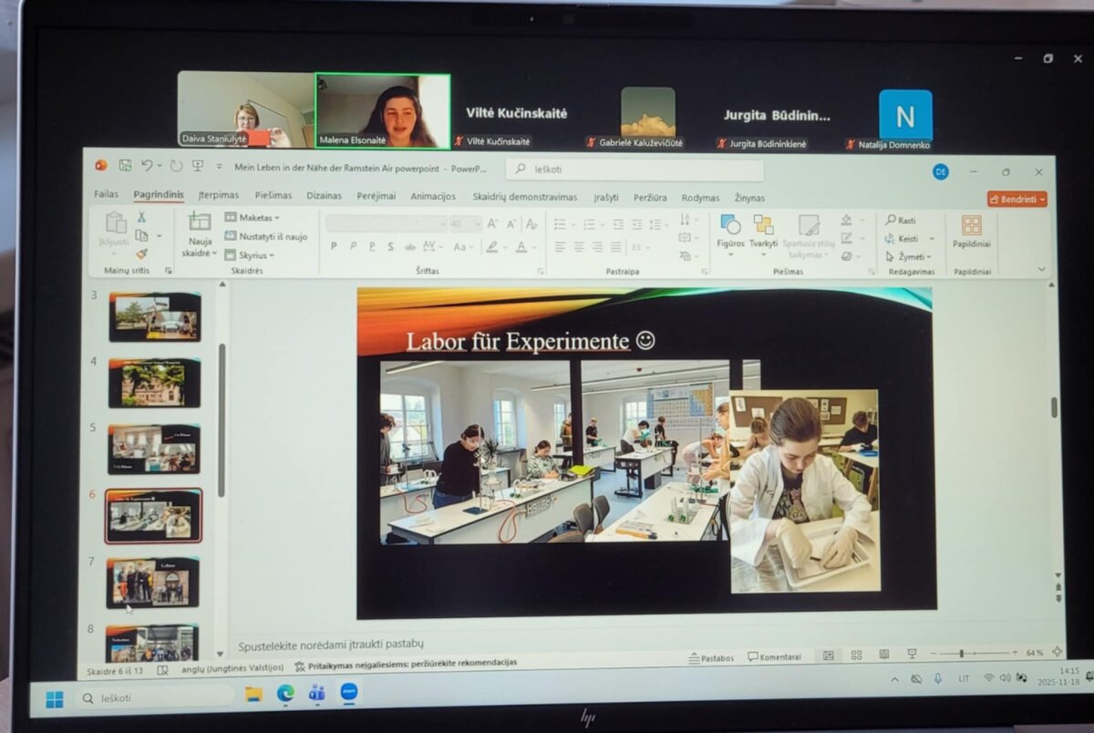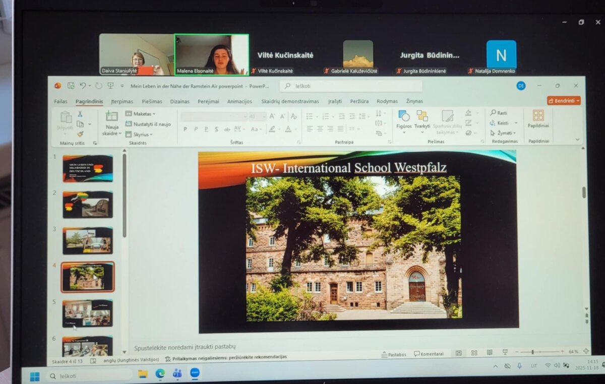 Gimnazijai atstovavo Malena Elsonaitė (2a kl.), kuri vokiečių kalba parengė ir pristatė pranešimą „Mano gyvenimas ir patirtis Vokietijoje“ („Mein Leben und Erlebnisse in Deutschland“). Savo pranešime Malena pasidalino įžvalgomis apie skirtumus tarp buvusios ir dabartinės mokyklos, papasakojo, kas buvo sunkiausia išvykus, ir kokią vertingą patirtį suteikė treji metai gyvenimo kitoje šalyje.