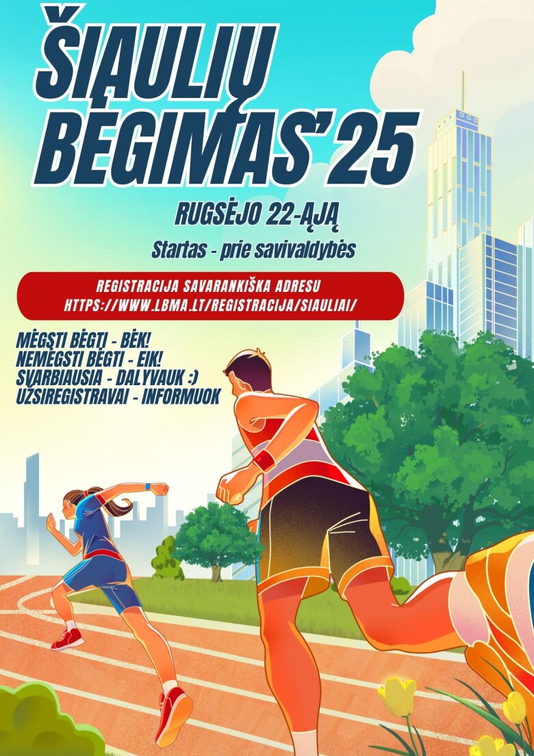 Rugsėjo 22 d., pirmadienį, kviečiame aktyviai švęsti 789-ąjį Šiaulių miesto gimtadienį ir dalyvauti Šiaulių bėgime’25. Nesvarbu, ar esi patyręs bėgikas, ar tiesiog nori smagiai praleisti laiką – ši šventė skirta kiekvienam!