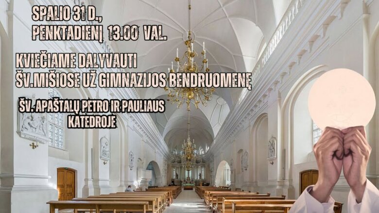 Kviečiame dalyvauti mišiose už gimnazijos bendruomenę