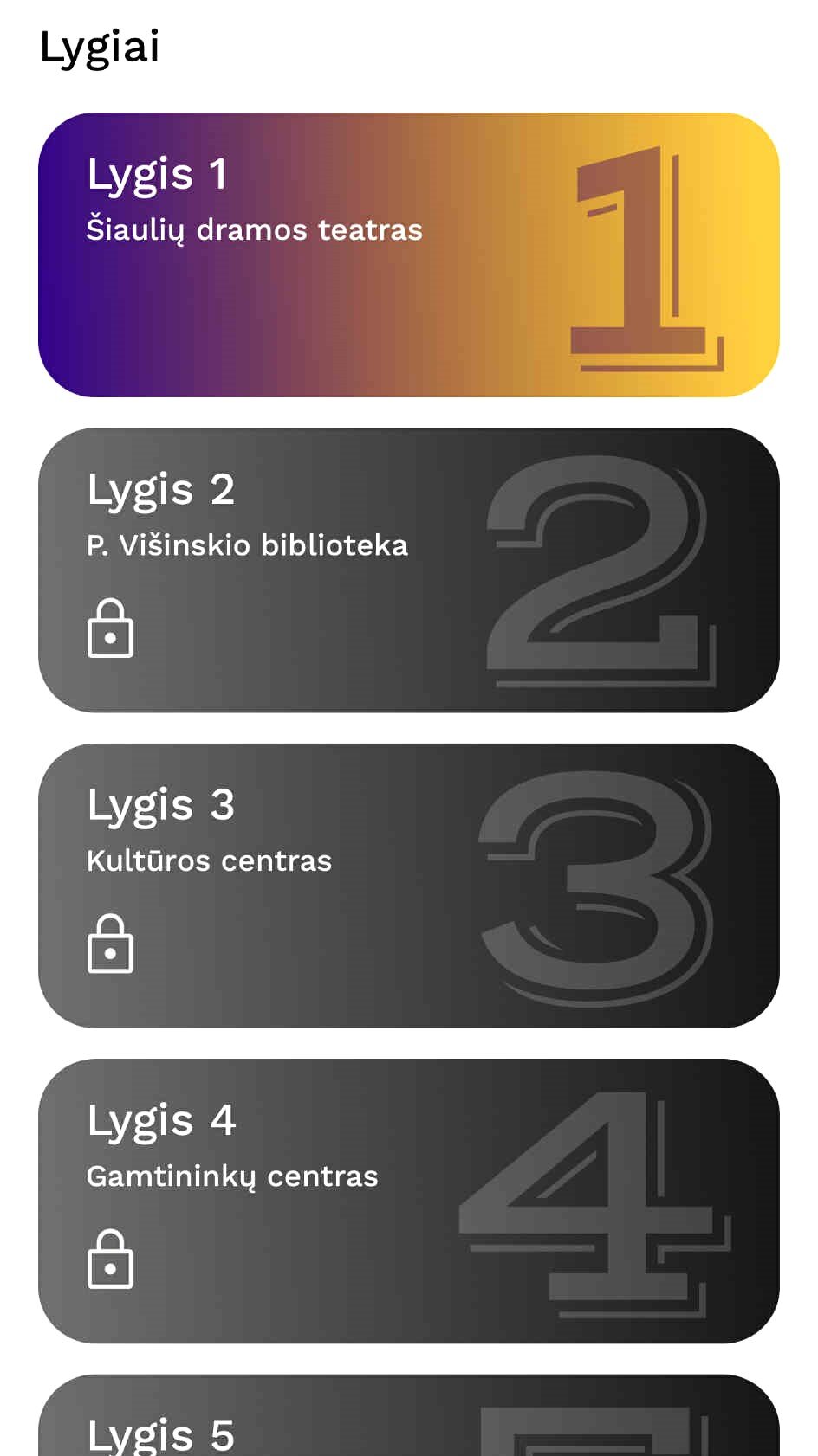 Šio žaidimo tikslas – skatinti gimnazistus pažinti Šiaulių miesto kultūros įstaigas per aktyvų dalyvavimą ir žingeidumą. Kartu su UAB „MES360.LT“ komanda ir Martynu priešakyje buvo sukurta internetinė programėlė, kurioje 11 lygių, atitinkančių skirtingas kultūros įstaigas. Norint pereiti į kitą lygį, reikia apsilankyti konkrečioje vietoje ir pasinaudoti specialiu kodu, sukurtu būtent tai įstaigai.
