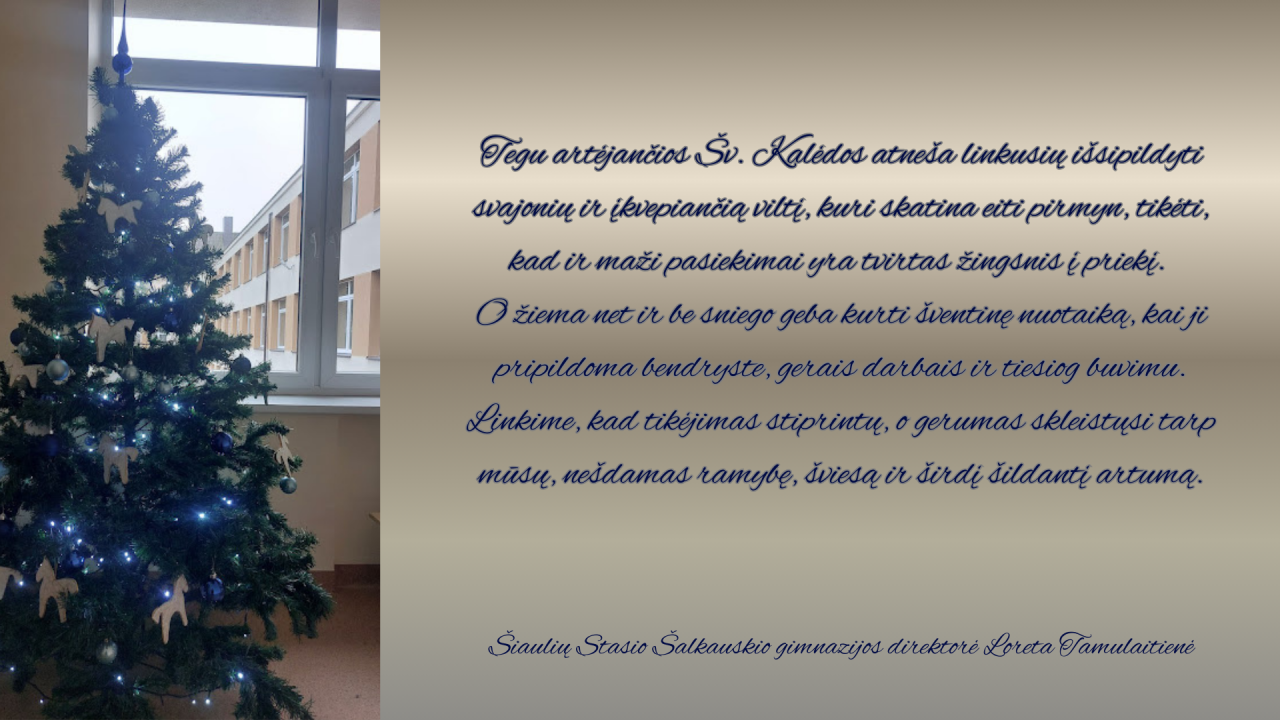 Šventinis direktorės sveikinimas gimnazijos bendruomenei
